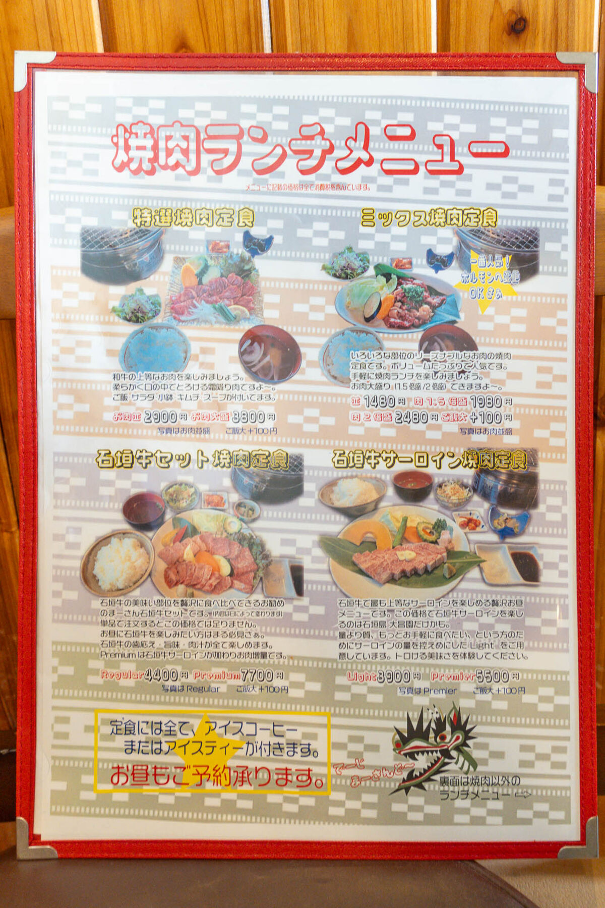 こちらは焼肉定食のメニュー。石垣牛もあるみたい!