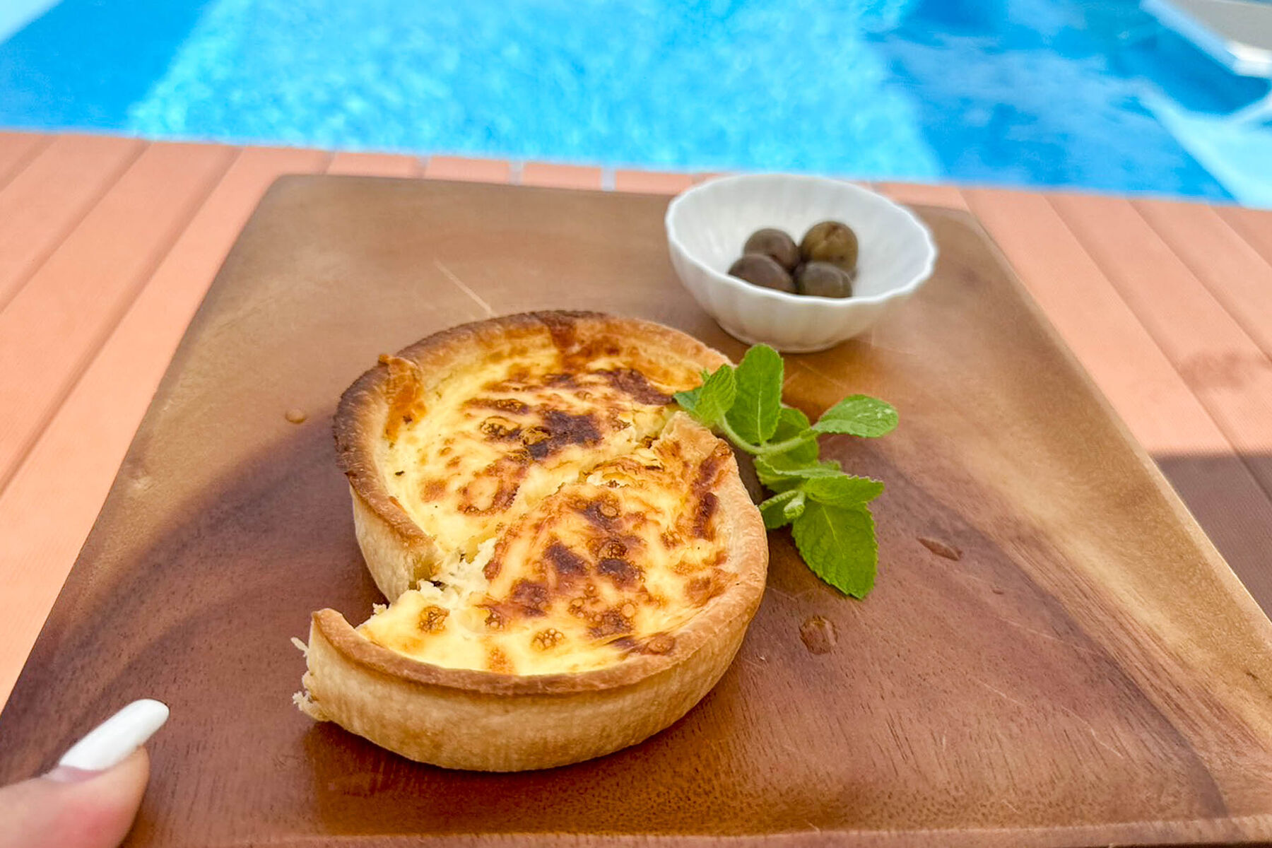 「THE BEER TERRACE」の『3種のチーズキッシュ』(石垣市川平)【いしつーグルメ】