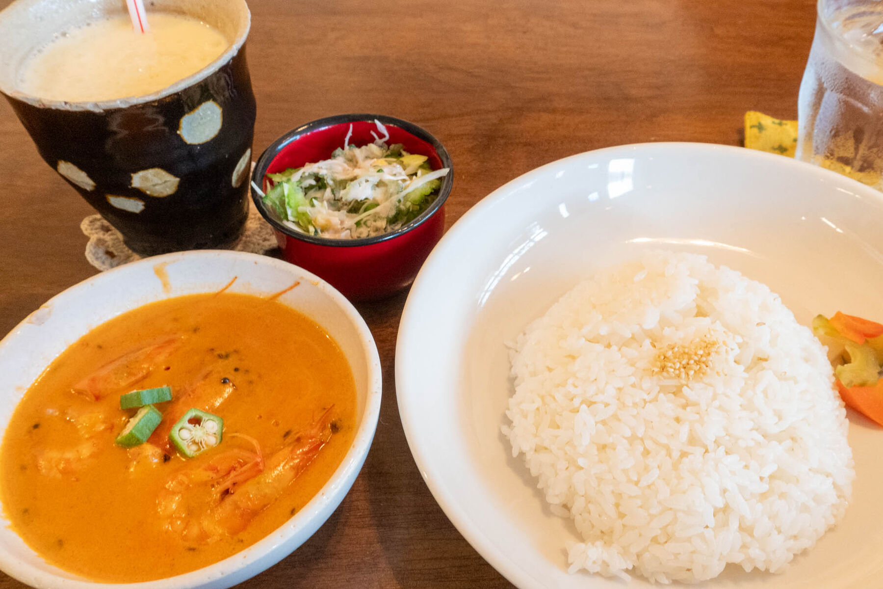「カフェ&カレー トラベラーズカフェ朔」の『石垣島産 車えびカレー』(石垣市登野城)【いしつーグルメ】
