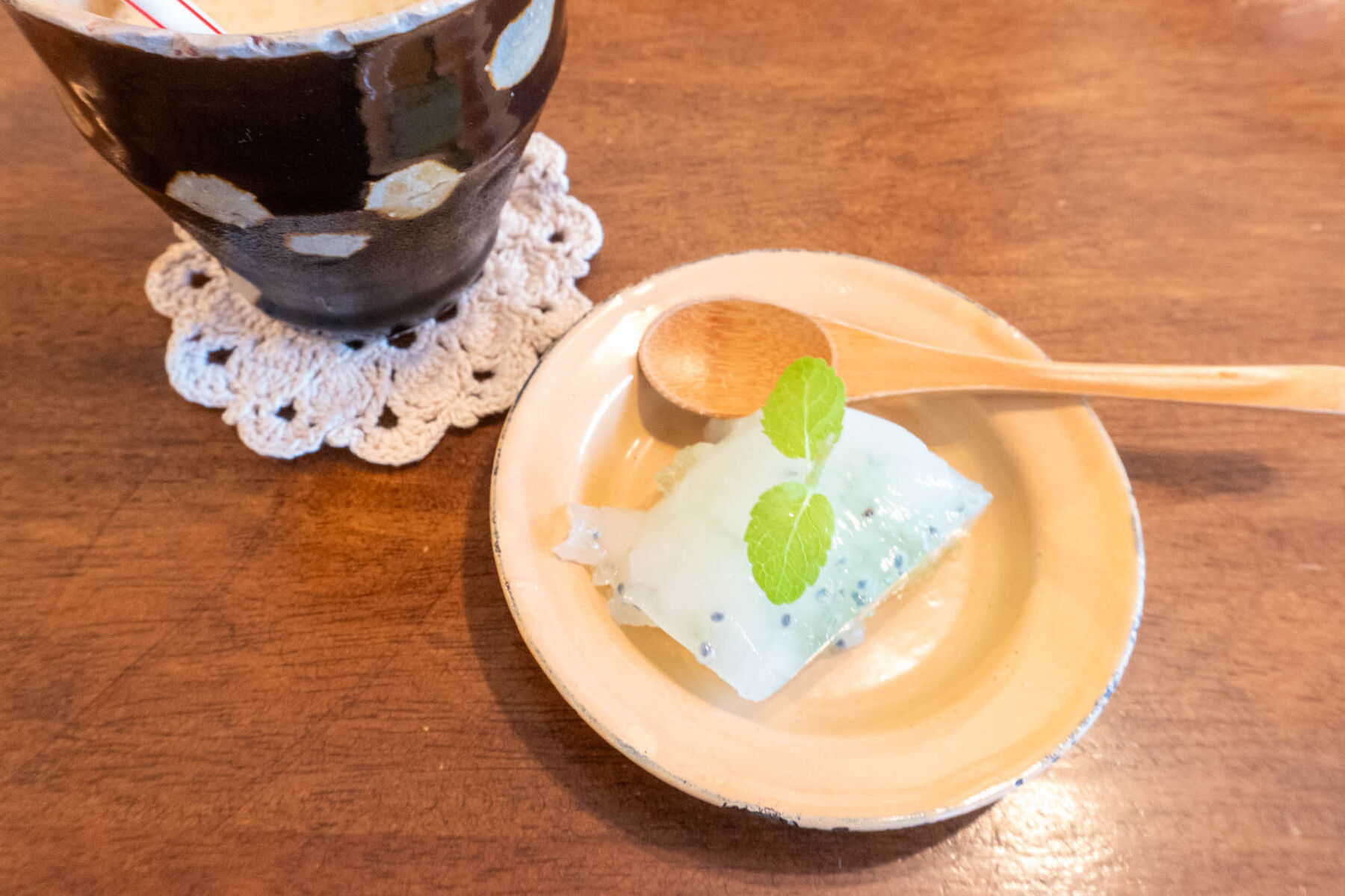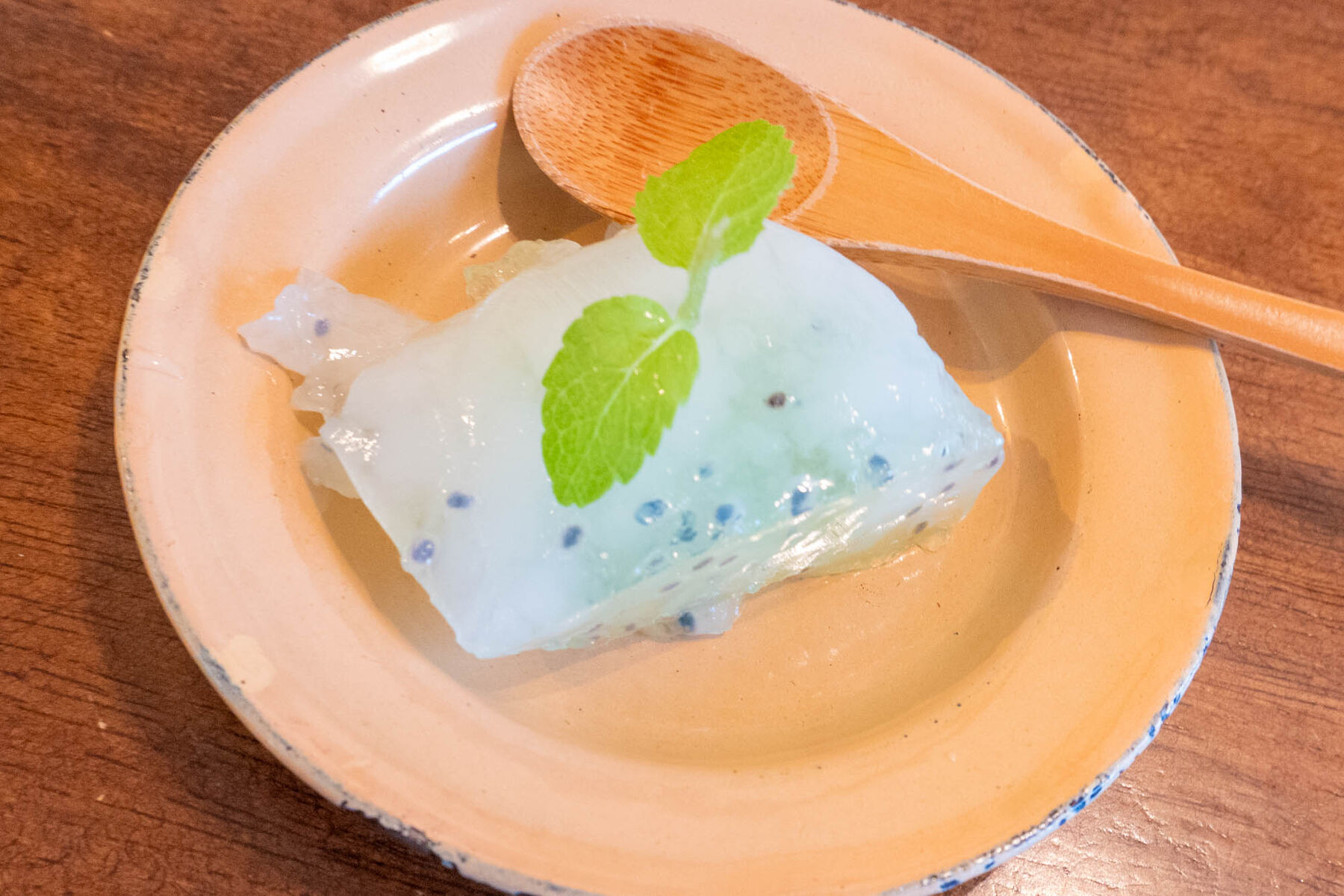 食事にはセットのデザート。この日はカルピスミントゼリーでした!