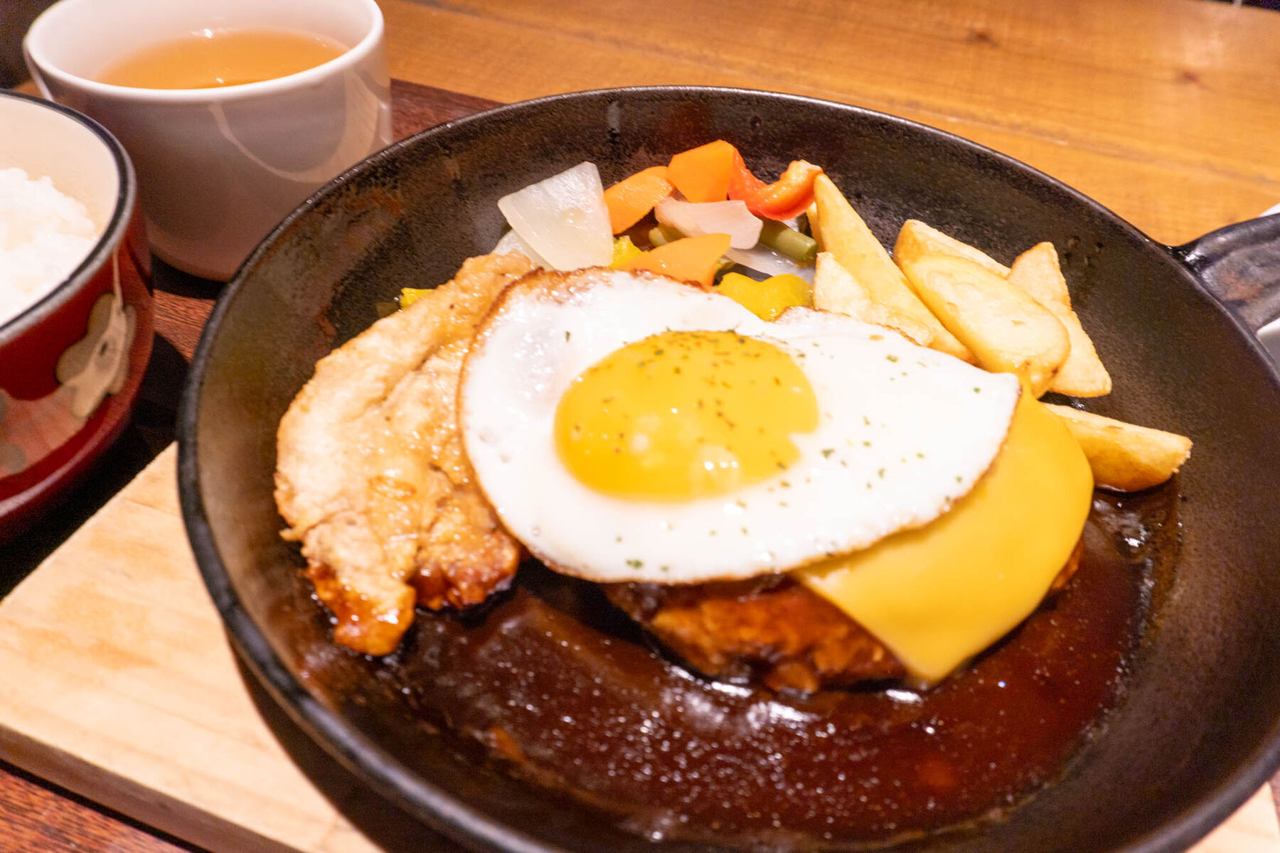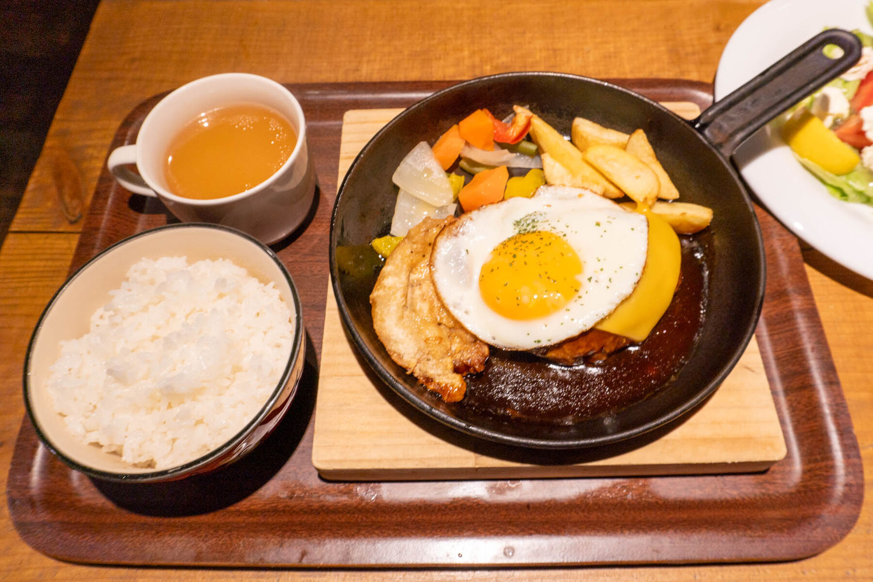 鉄板ハンバーグコンボはスープとごはんがセットになっています。
