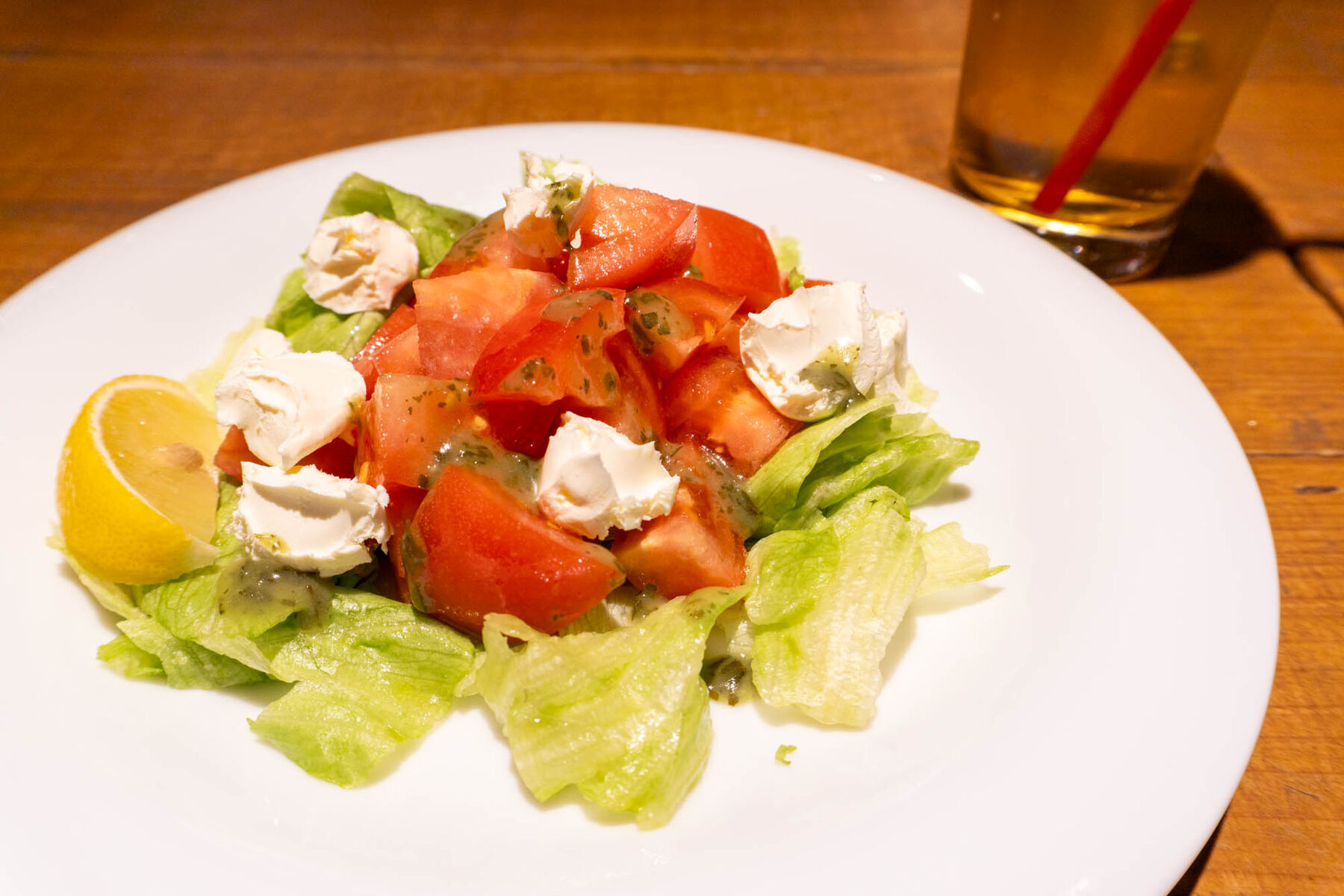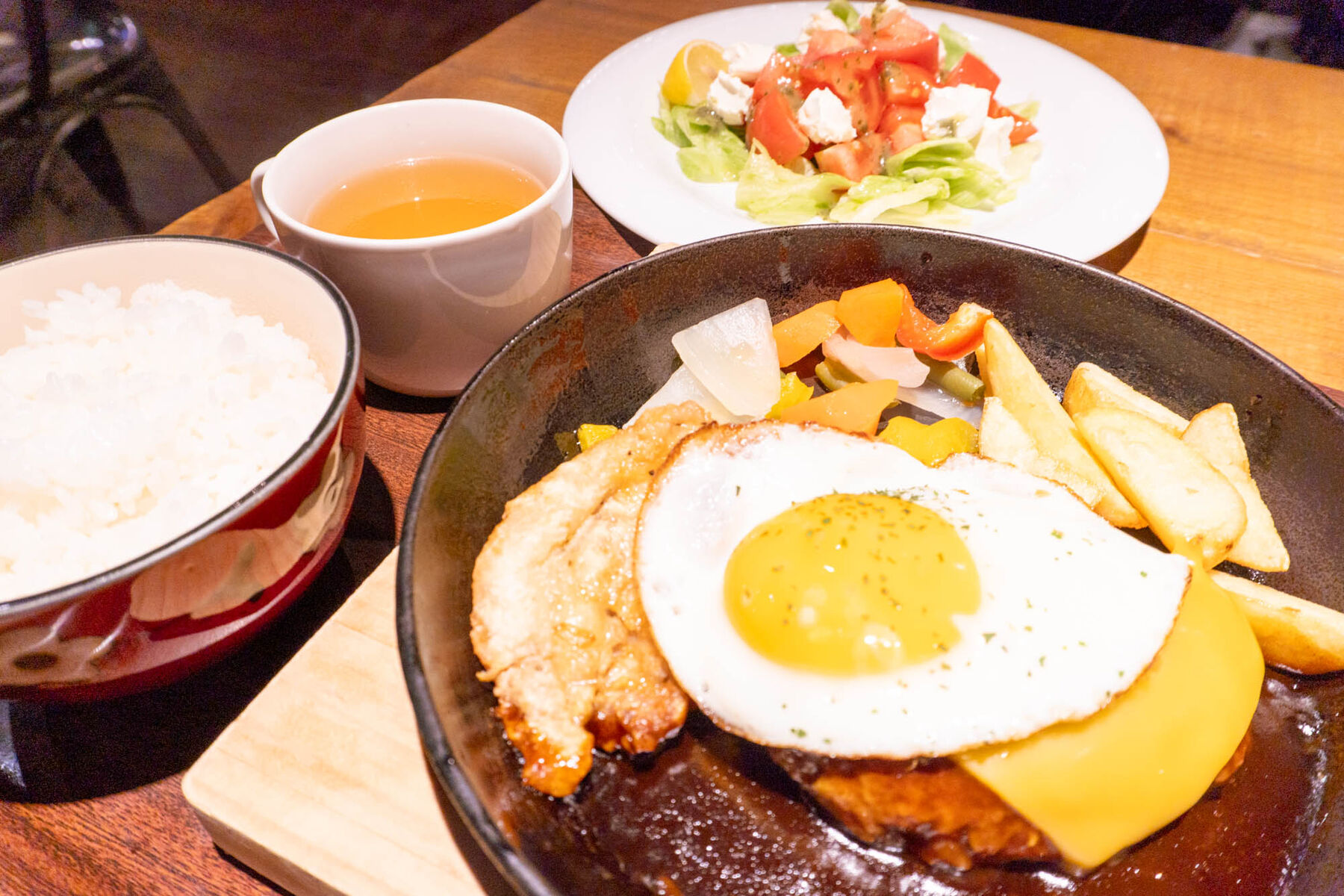 今回は鉄板ハンバーグコンボとトマトとチーズのサラダを注文しました〜〜。