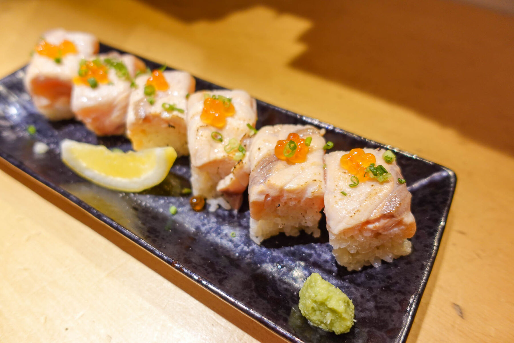 「うおうさおう」の『サーモンの炙り棒寿司』など(石垣市美崎町)【いしつーグルメ】