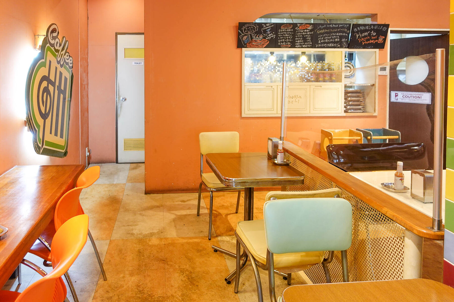 店内にはテーブル席とカウンター席が。店内もポップな雰囲気で可愛い〜!