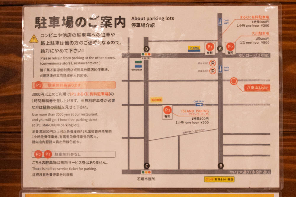 無料駐車券のサービス有(※3000円以上で有料駐車場の1時間無料券をもらえるとのこと)↓