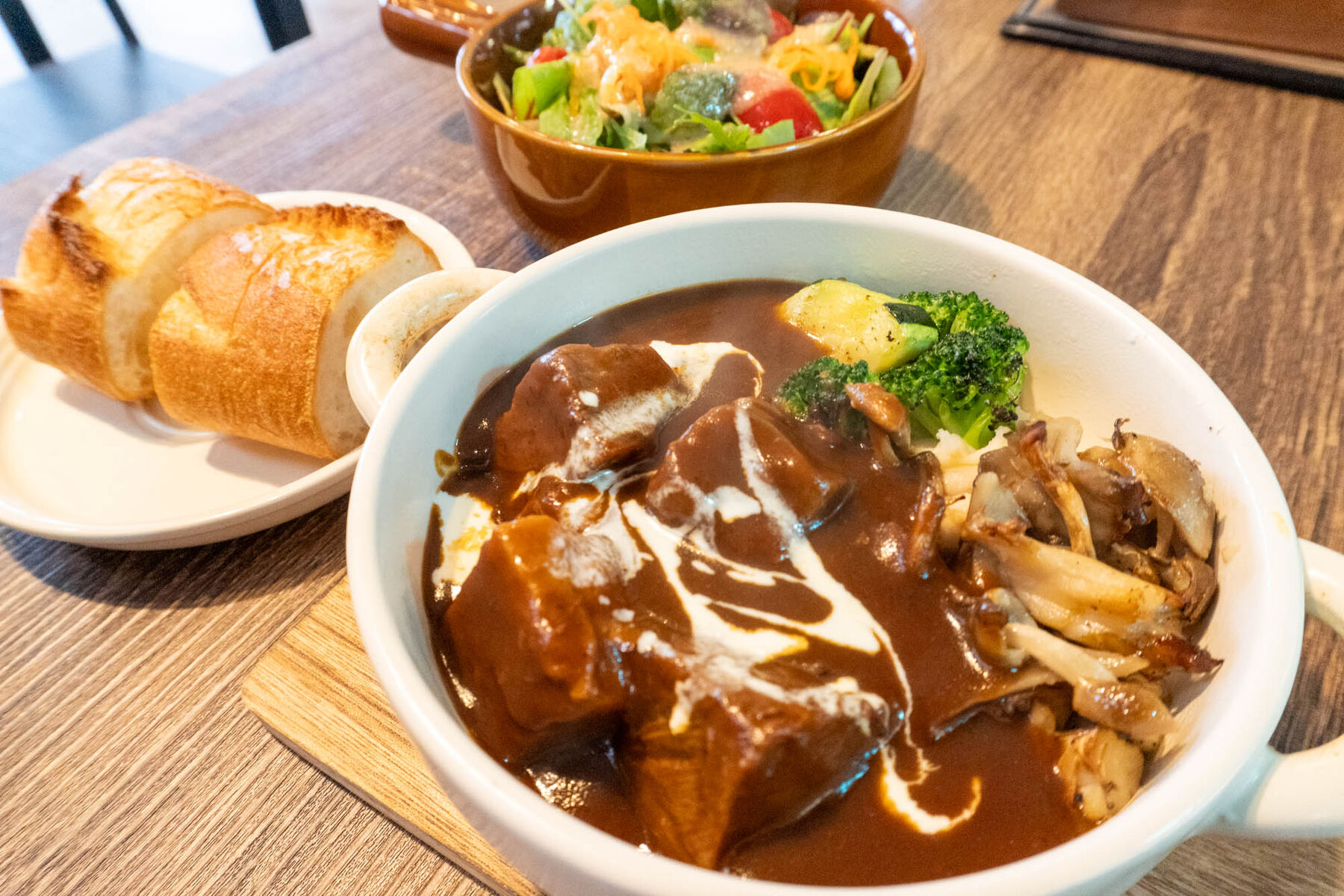 今回は悩みに悩んでお店の方にオススメしていただいたビーフシチューを注文しました〜。
