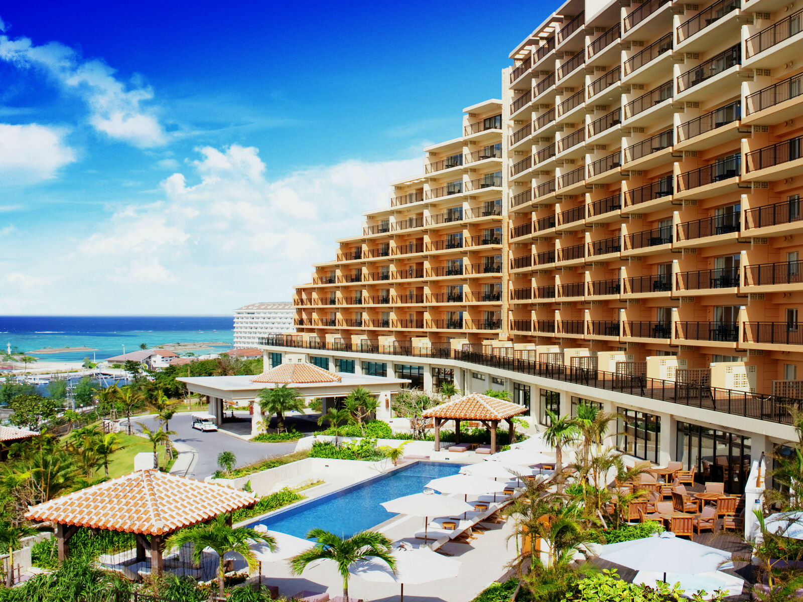 全客室オーシャンビュー、ゆったり44㎡以上と広く、プールやスパ、クラブラウンジなど設備が充実した北部リゾート。