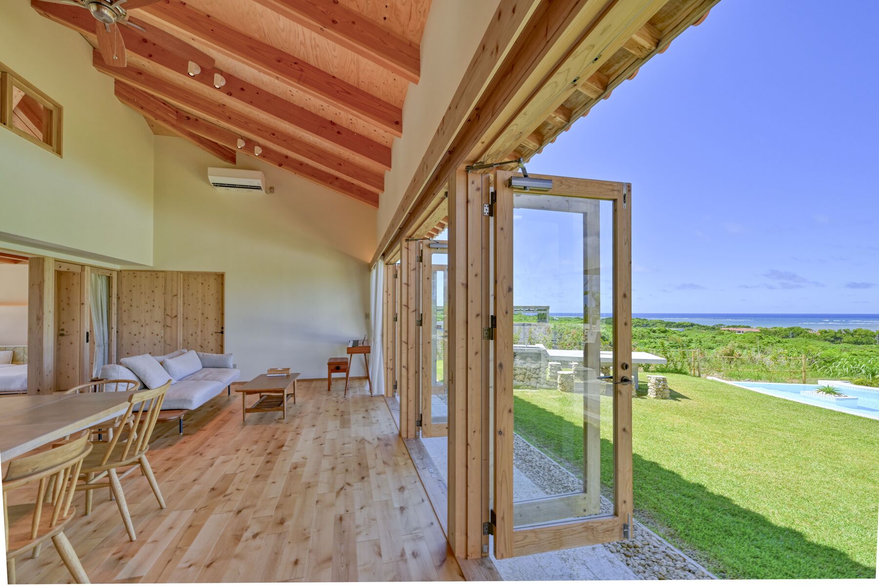 八重山らしい佇まいを大切に、美しさと使いやすさを追求した空間。眼下に広がる海と繋がる開放感の中、家族や友人との絆を深める特別なひとときを。広い敷地に2棟だけの完全プライベートヴィラで、街の喧騒を離れ、自然のリズムに身を委ねてくつろげる贅沢な時間をお過ごしください。