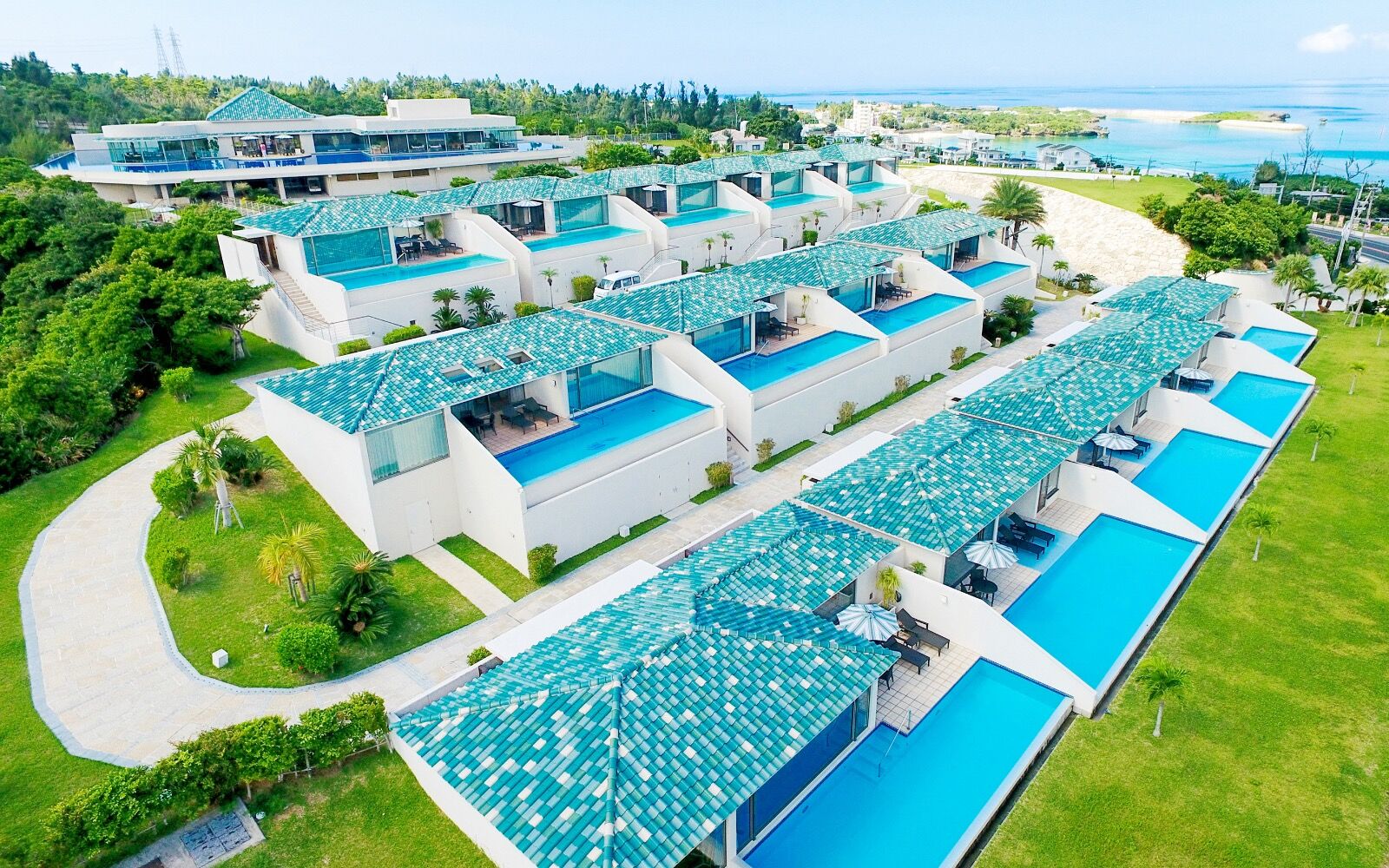 沖縄の碧い海を望むモダンヴィラ。