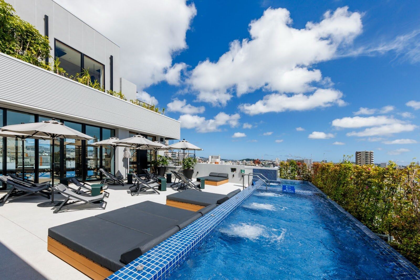 国際通りに近い好立地ながら、非日常を感じるルーフトッププールが象徴的。