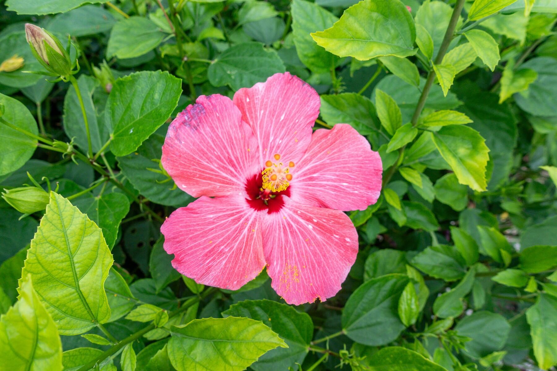 (市役所通りの歩道に咲いていたハイビスカス)