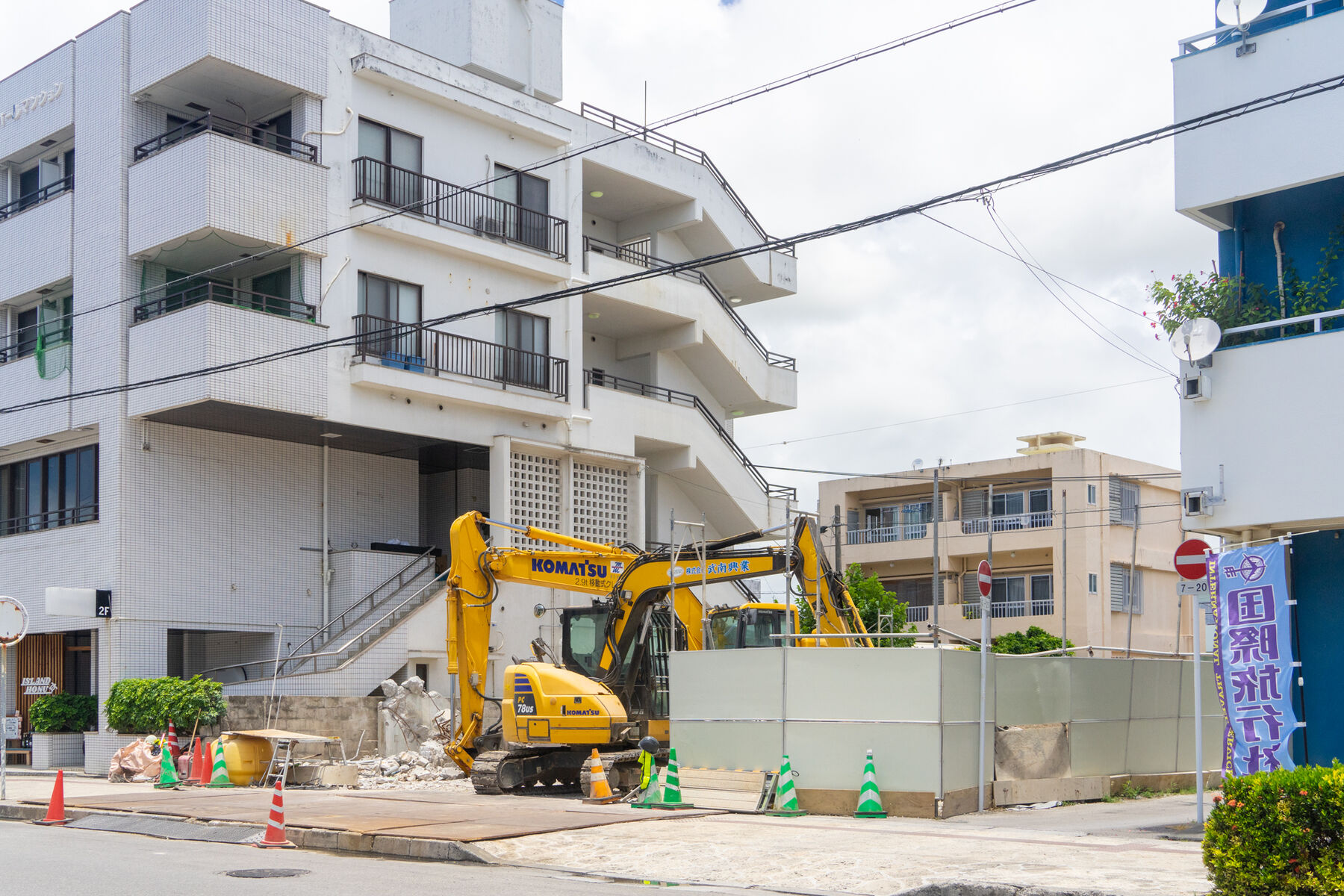 ゆらてぃく市場ちかくのビルが解体されてる