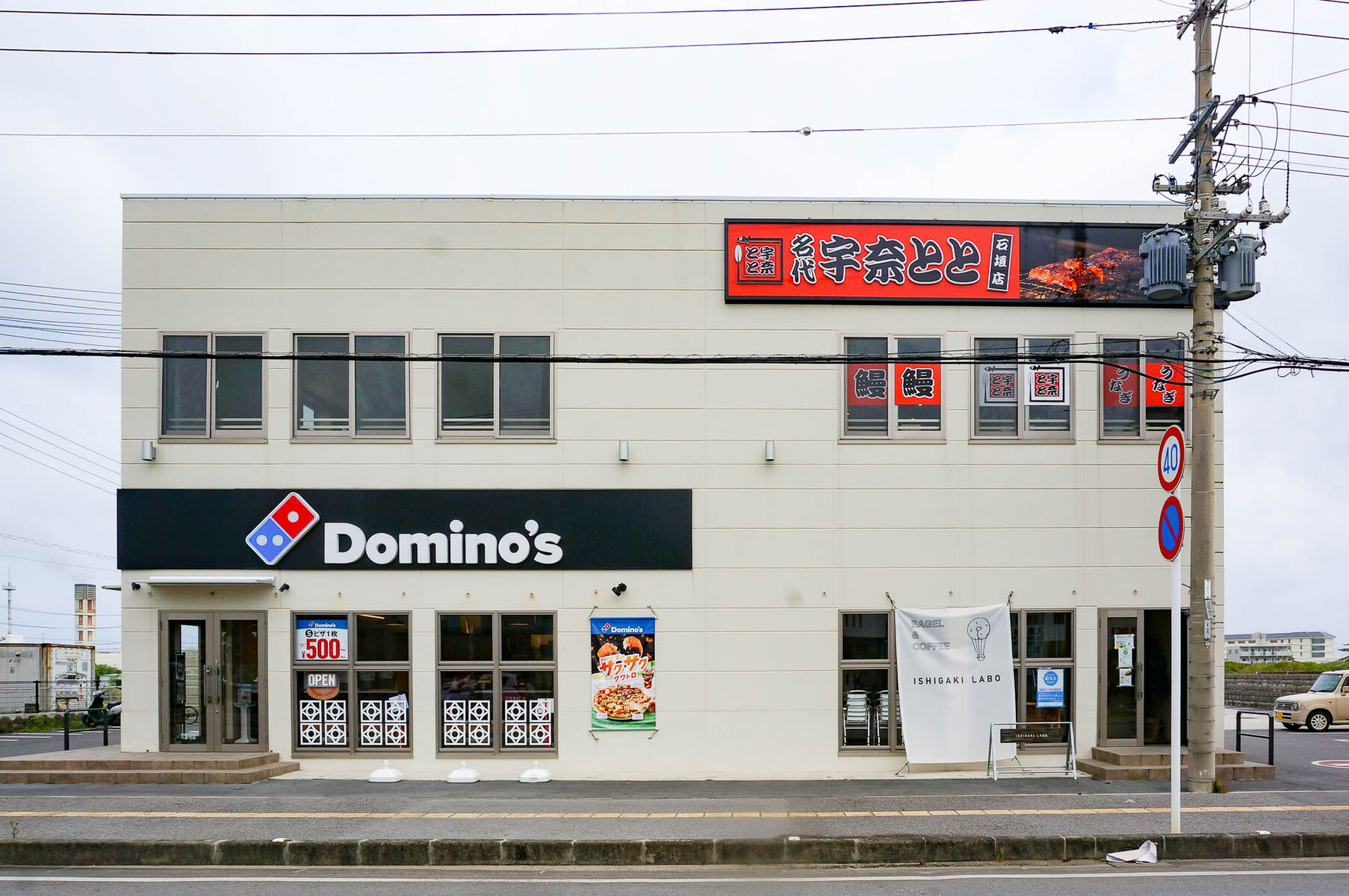 建物の外見はこんな感じ。隣には「ドミノピザ」があります。