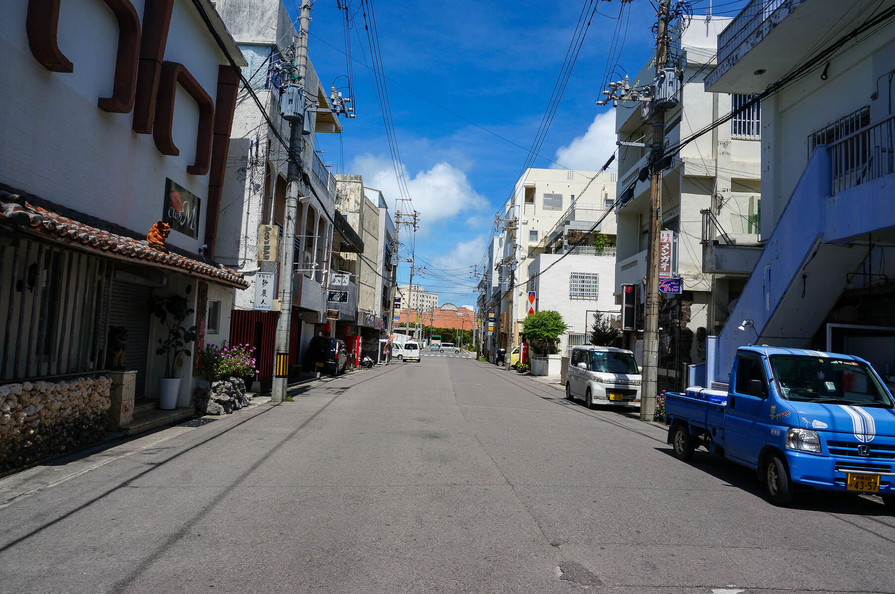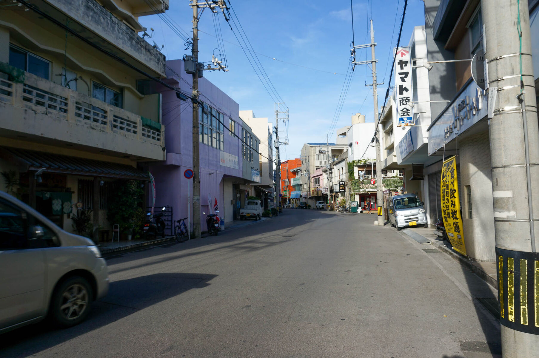 左手に店舗がありまして、こっちにいくと、ヴィレッジがあります。そのまま進むと美崎センター通りを出て市役所通りに。
