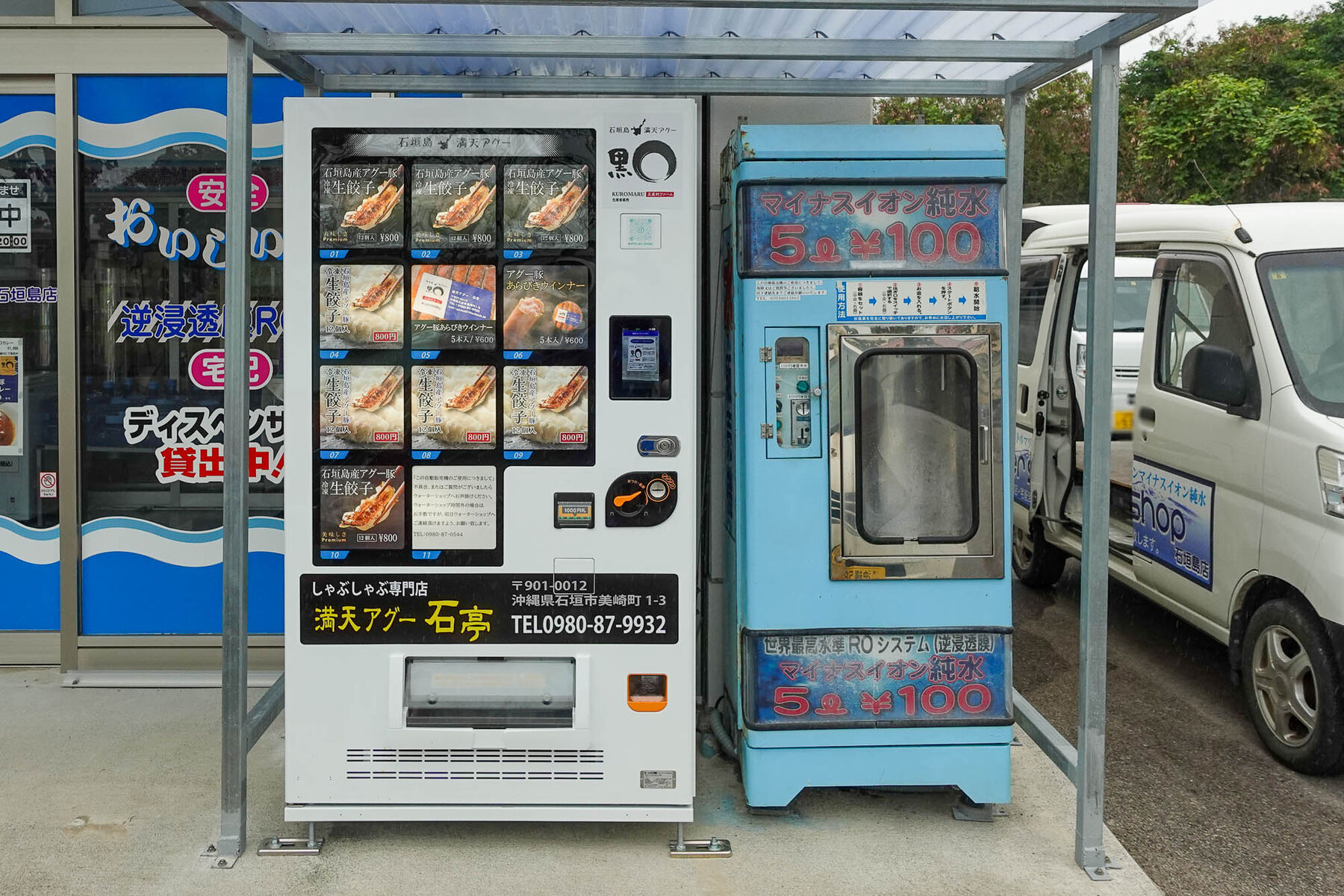 自動販売機には「満天アグー石亭」の生餃子やウインナーなどが販売されています。
