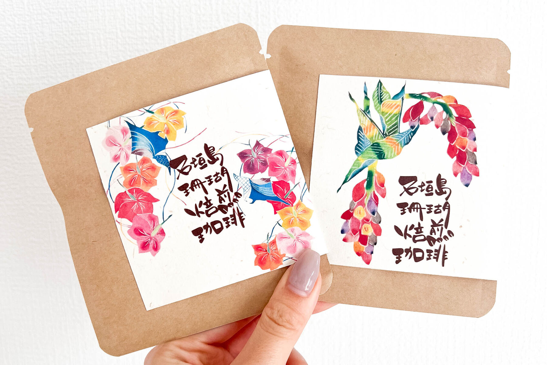 (ヒント!!紅型のデザインが施された石垣島珊瑚珈琲の写真)