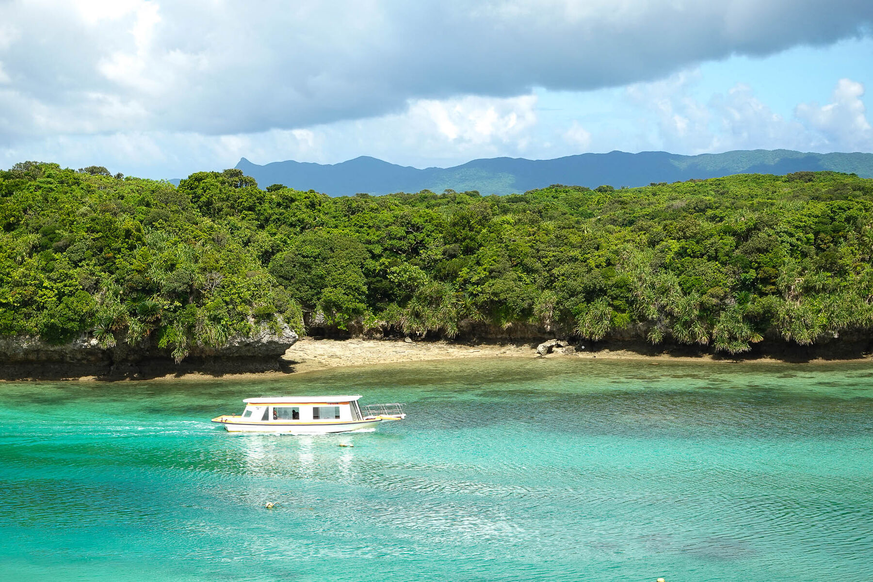 潮の流れが早いことと、観光用のグラスボートが行き来しているので遊泳禁止ですが、「川平湾」はグラスボートに乗って250種類ものサンゴや熱帯魚などを見て楽しめます。