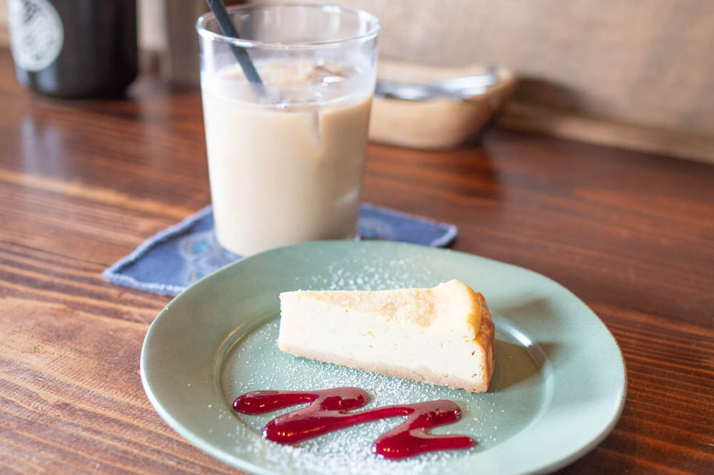 こちらが今回注文した「石垣産ジャージー生クリームのベイクドチーズケーキ」と「カフェラテ」。