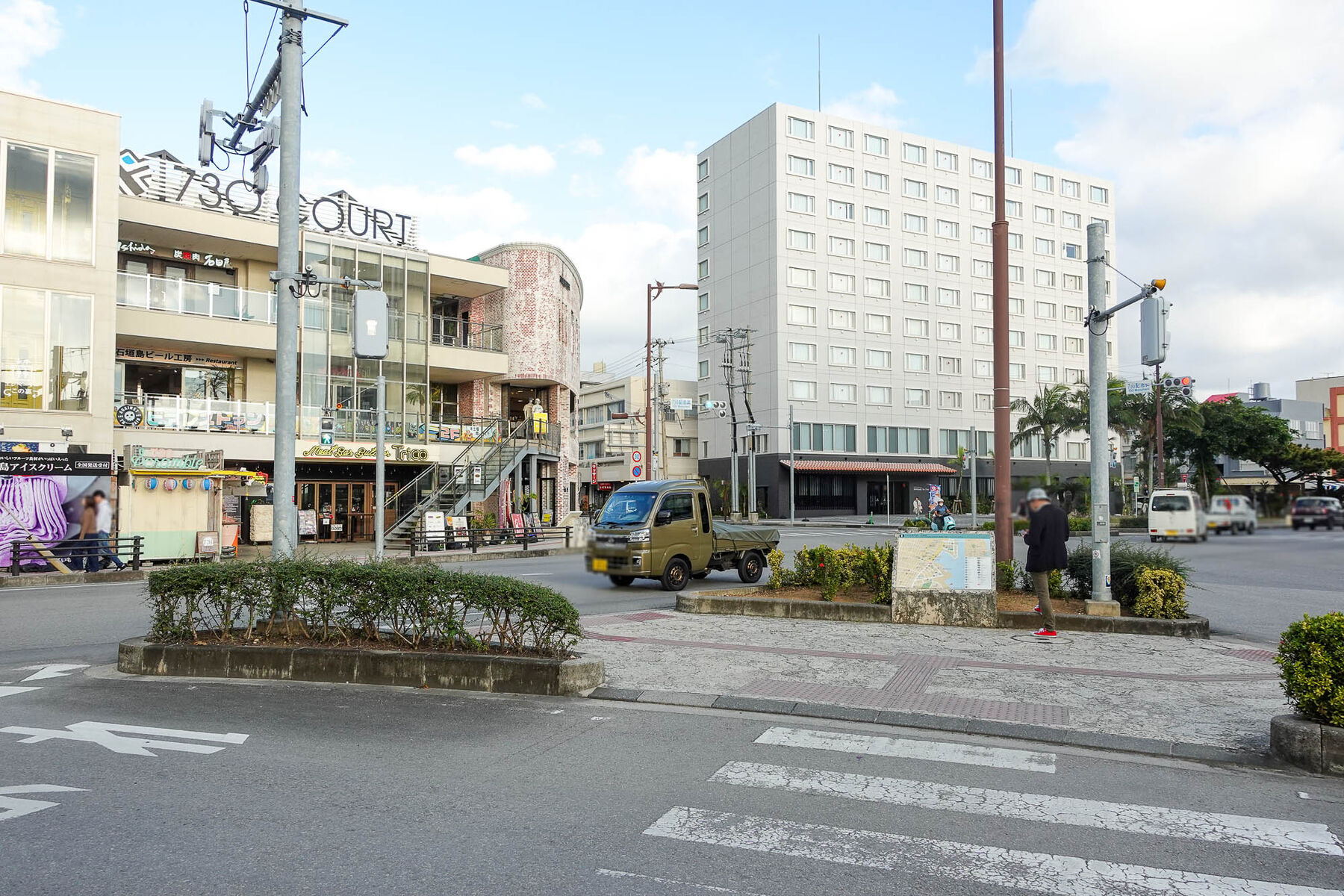 スタートは石垣島の中心街のシンボル「730記念碑」から!