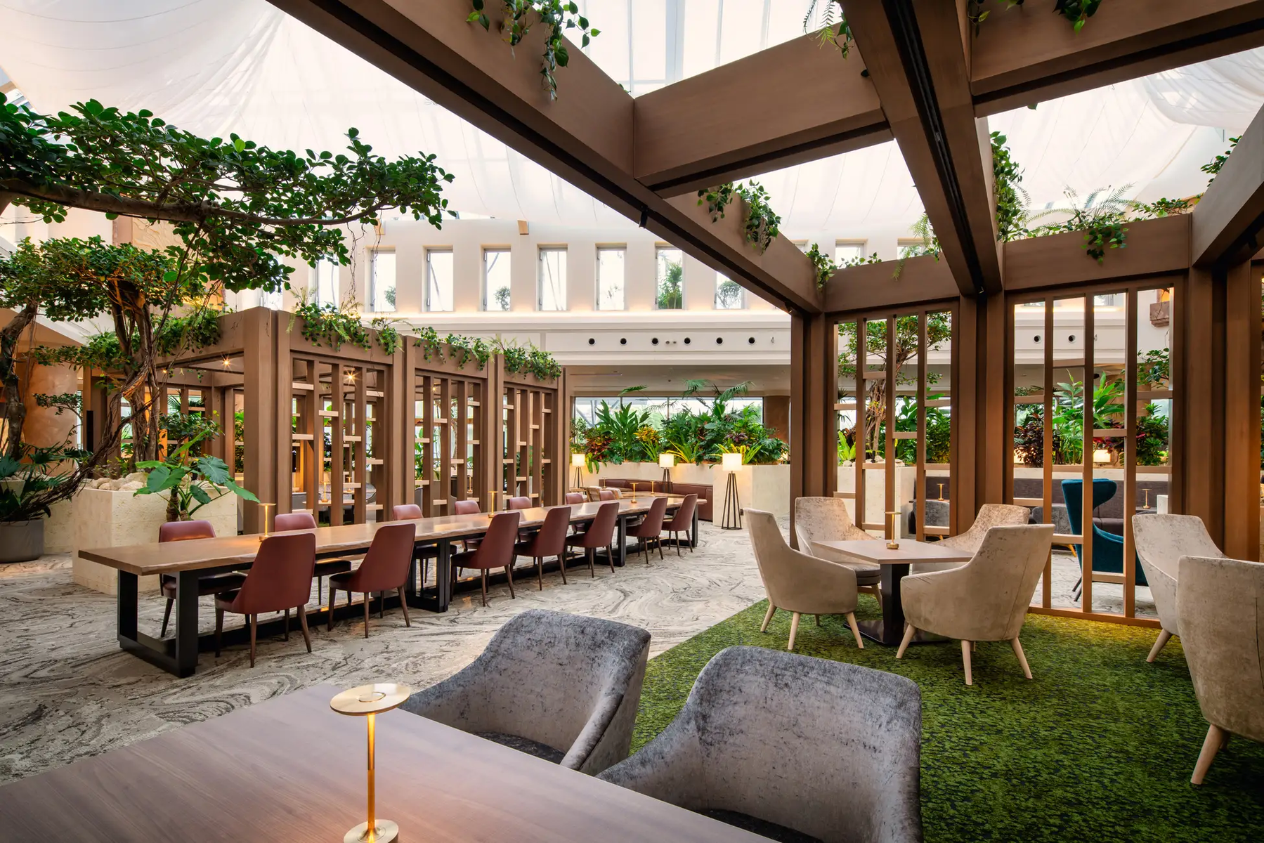ロビーには島の草花があふれ、森の音を模したサウンドが流れる幻想的な空間。まるでやんばるの夜に包まれるような、非日常のリラックスタイムを提供してくれます。