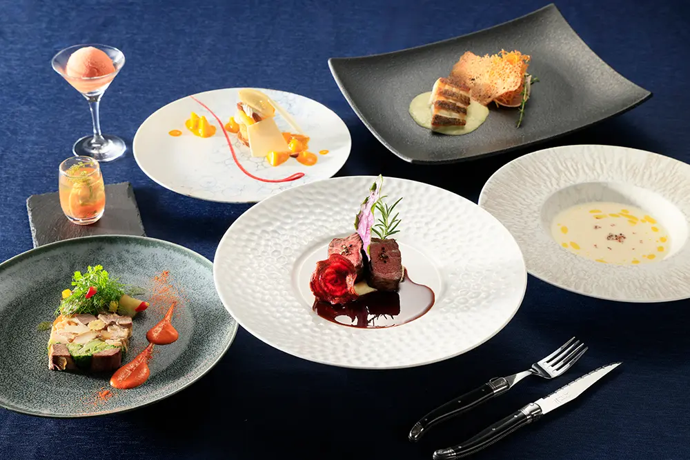 一皿ごとに星空をイメージした盛り付けや色彩が施され、味わいだけでなく視覚的にも楽しめる構成です。